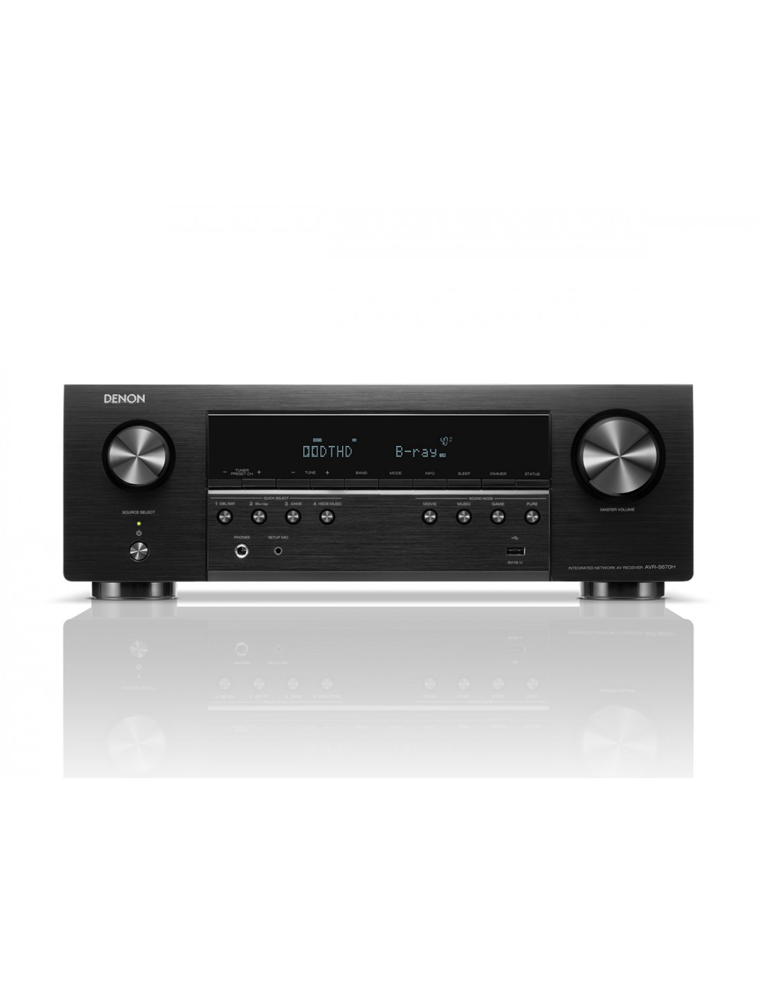 El AVR-S670H ofrece imágenes espectaculares en 8K, un sonido surround de alta definición y decodificadores Dolby TrueHD y DTS HD Master Audio. Además, gracias a HEOS® Built-in, permite transmitir música a través de Spotify, Tidal, Amazon Music HD, AirPlay 2, Bluetooth y otros servicios.