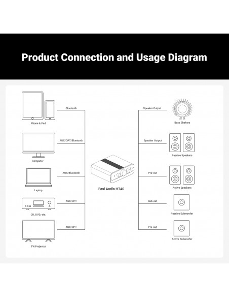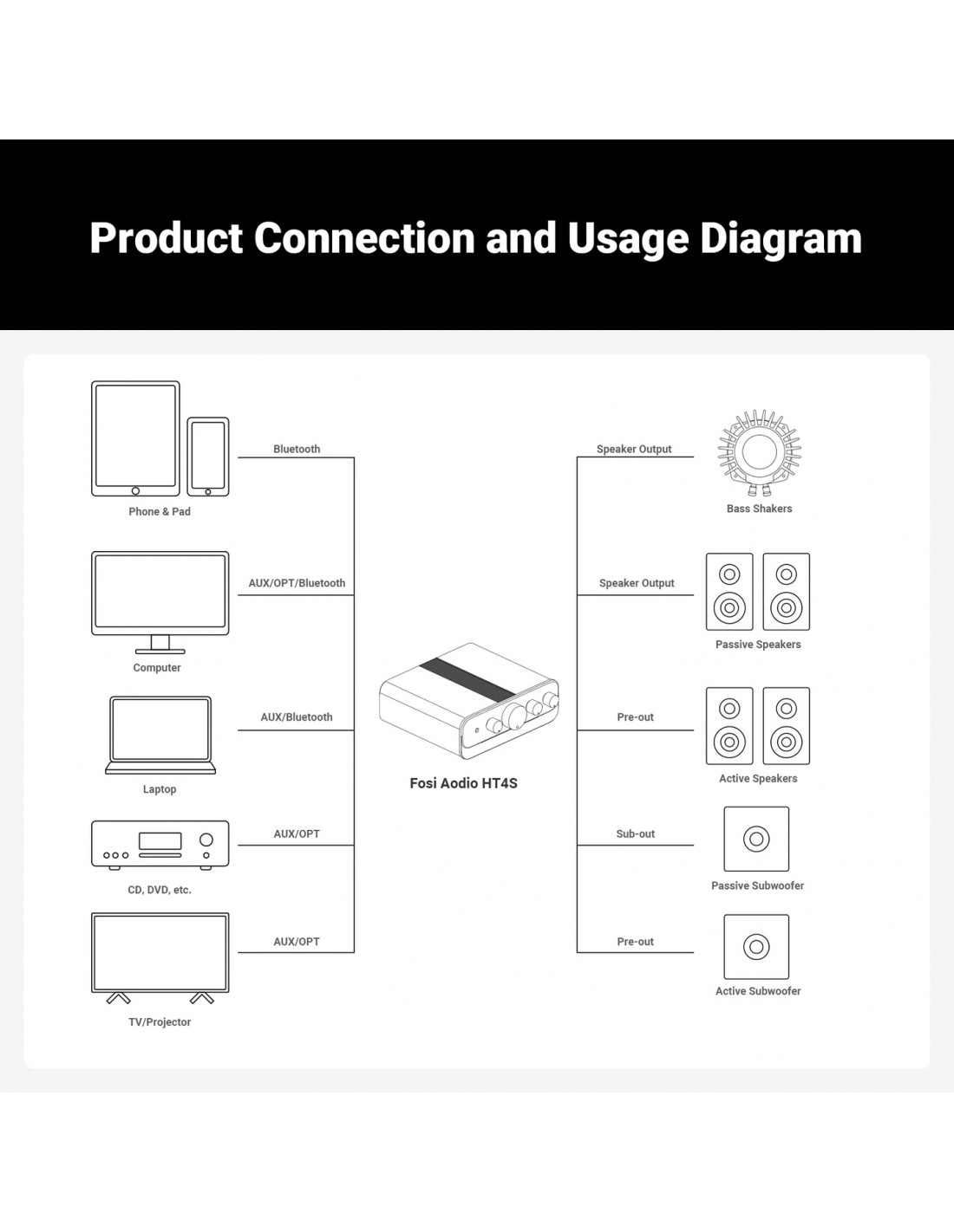 Amplificador de potencia integrado multicanal Fosi Audio HT4S