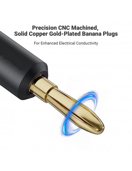 - Conectores: Conectores banana de cobre macizo chapados en oro y mecanizados con precisión por CNC para una mejor conductividad eléctrica.