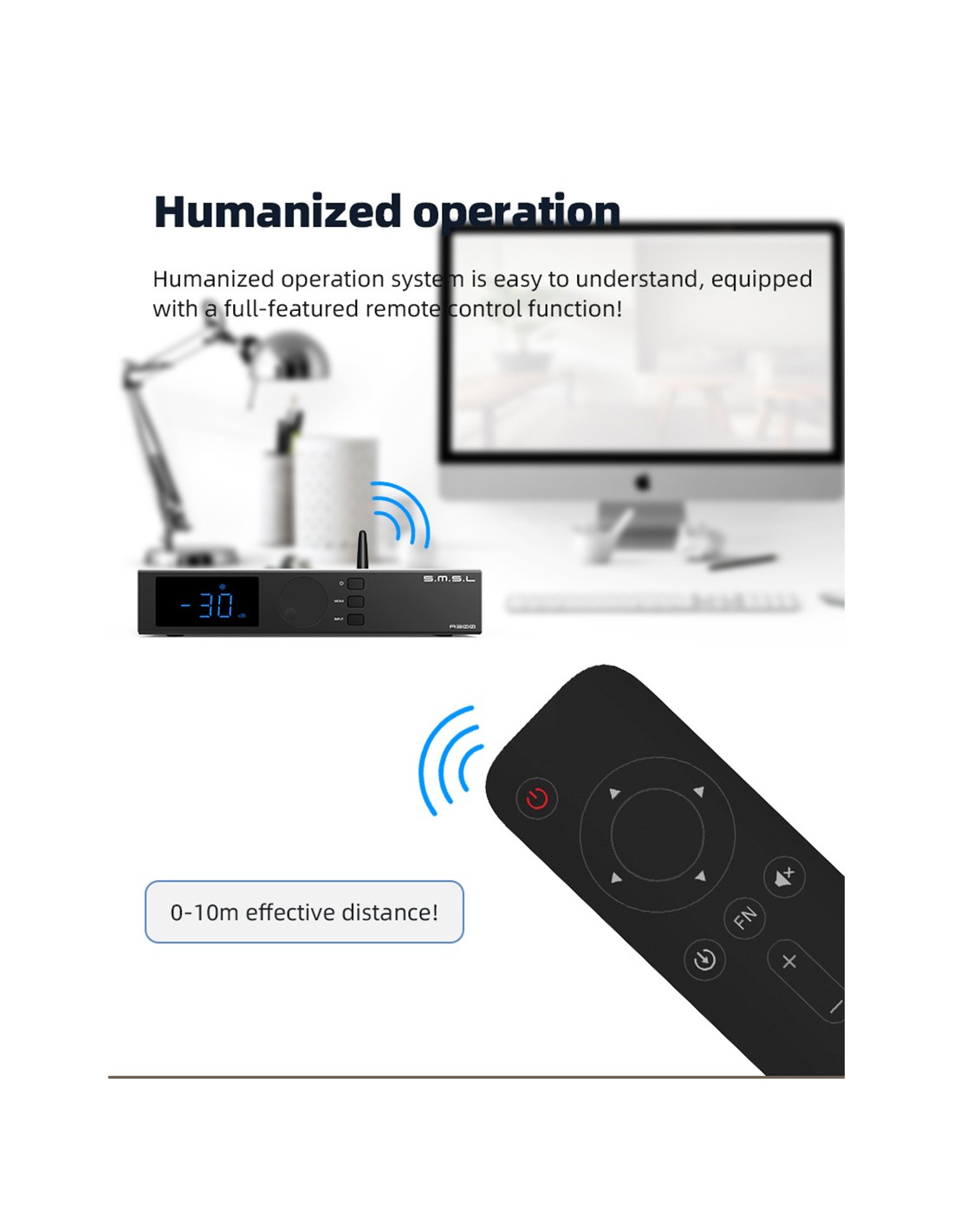 El efecto de sonido patentado SMSL SDB integrado y la función de ajuste de alto/graves pueden combinar fácilmente con varios altavoces y música; el circuito de filtro de paso alto incorporado filtra el subwoofer, acciona el altavoz principal y coopera con el subwoofer para formar un sistema 2.1.