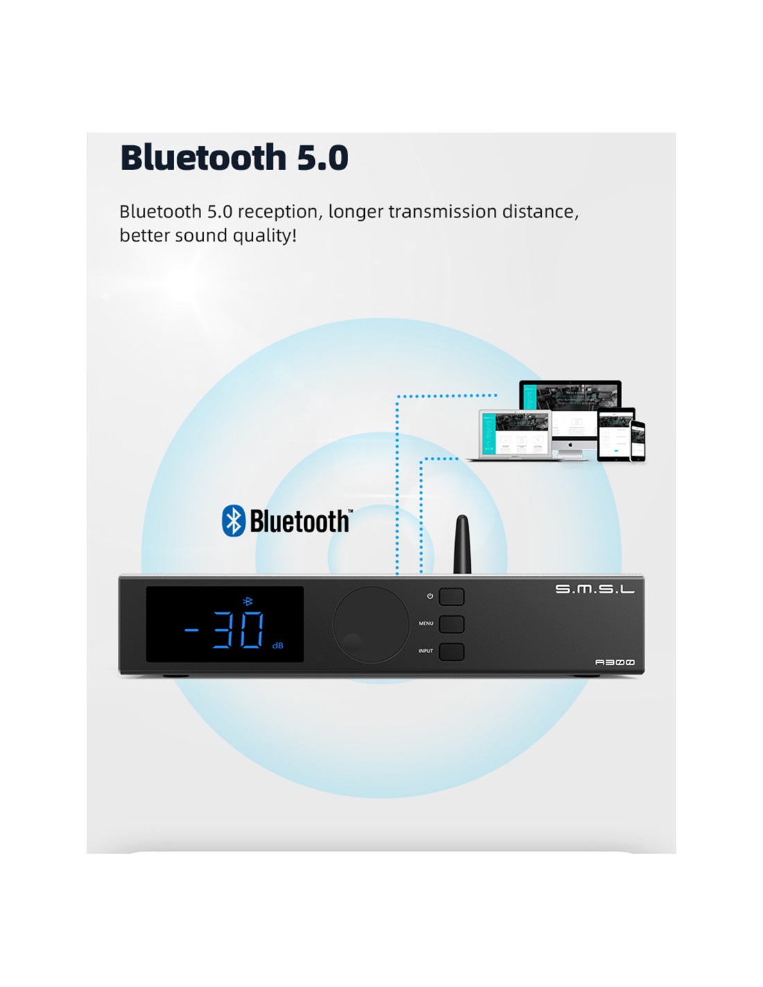 SMSL A300 Amplificador de alta fidelidad 2.1 con Hi-Res Bluetooth 5.0, con control remoto.