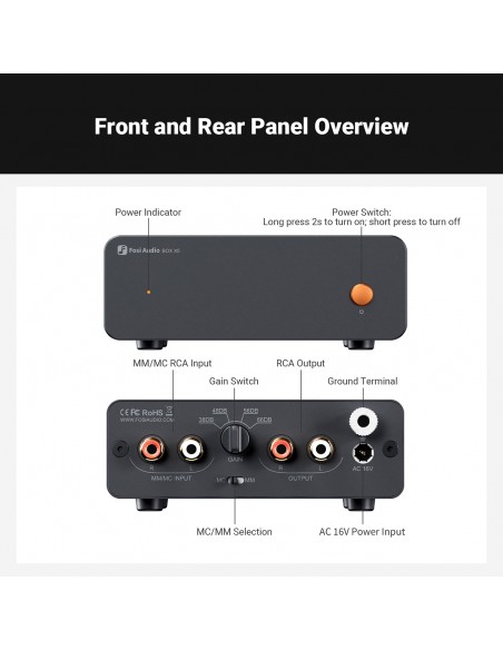 Alto rendimiento: El preamplificador de phono BOX X5 es compatible con cartuchos MM y MC, cuenta con 4 configuraciones de ganancia y una excelente ecualización RIAA precisa para proporcionar un paso limpio y directo de una señal cuando se combina con su tocadiscos.