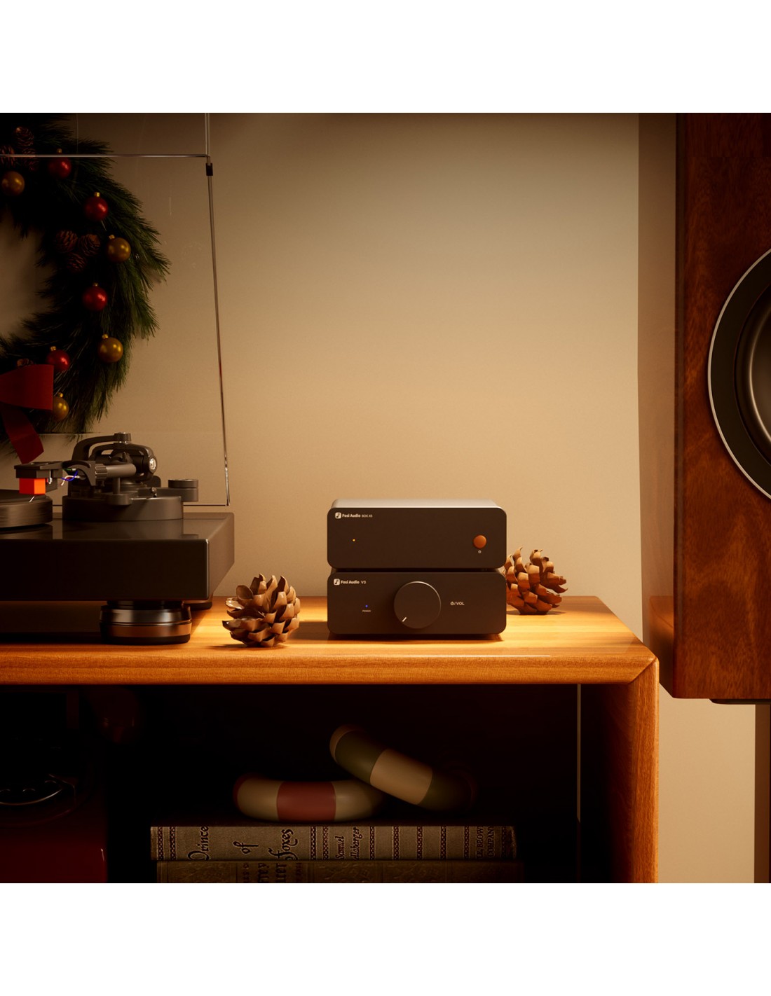 Mini y Exquisito: Su diseño minimalista pero funcional incluye un chasis de aleación de aluminio. Al combinarlo con el amplificador estéreo V3, el BOX X5 optimiza la reproducción de vinilos, optimizando su respuesta de frecuencia y su rendimiento dinámico.