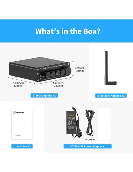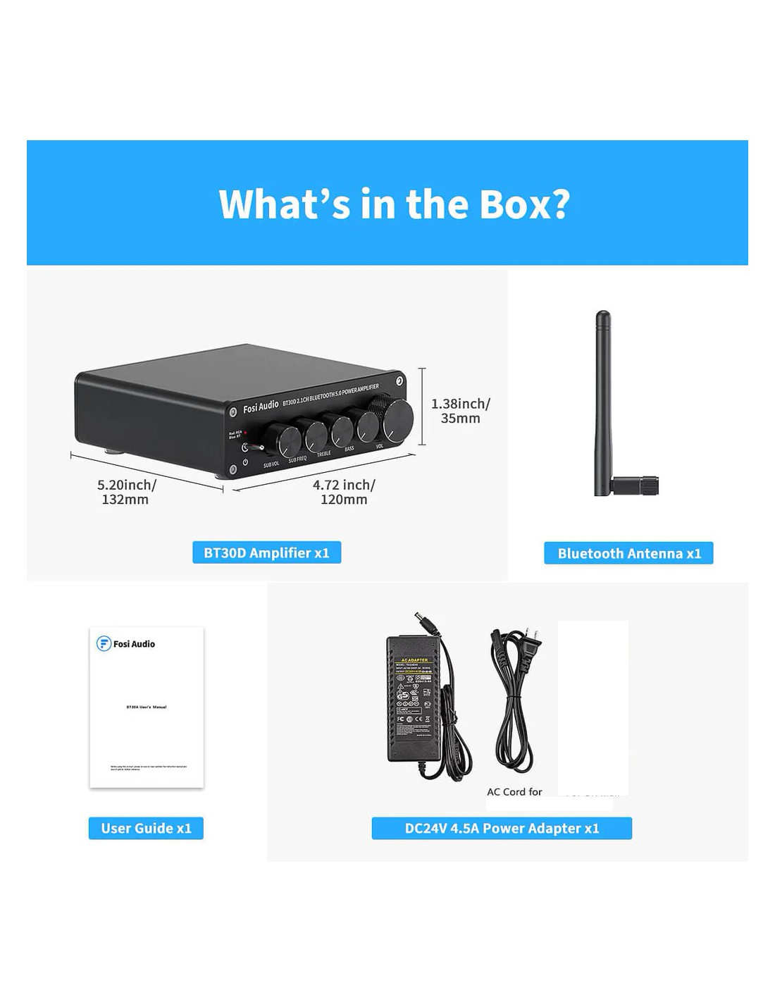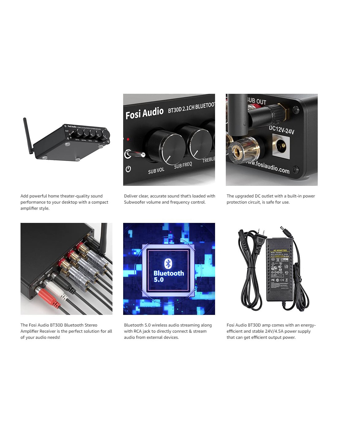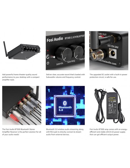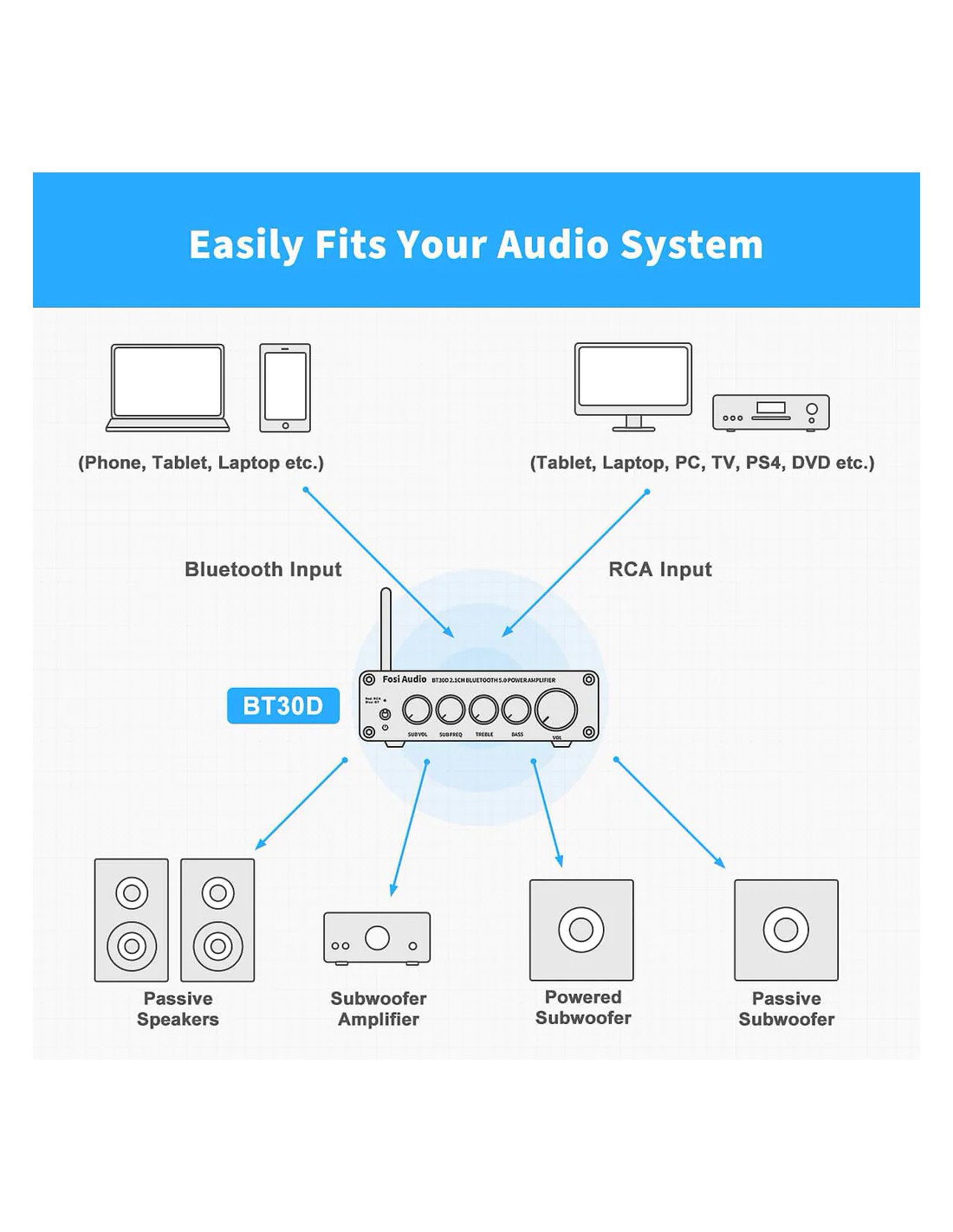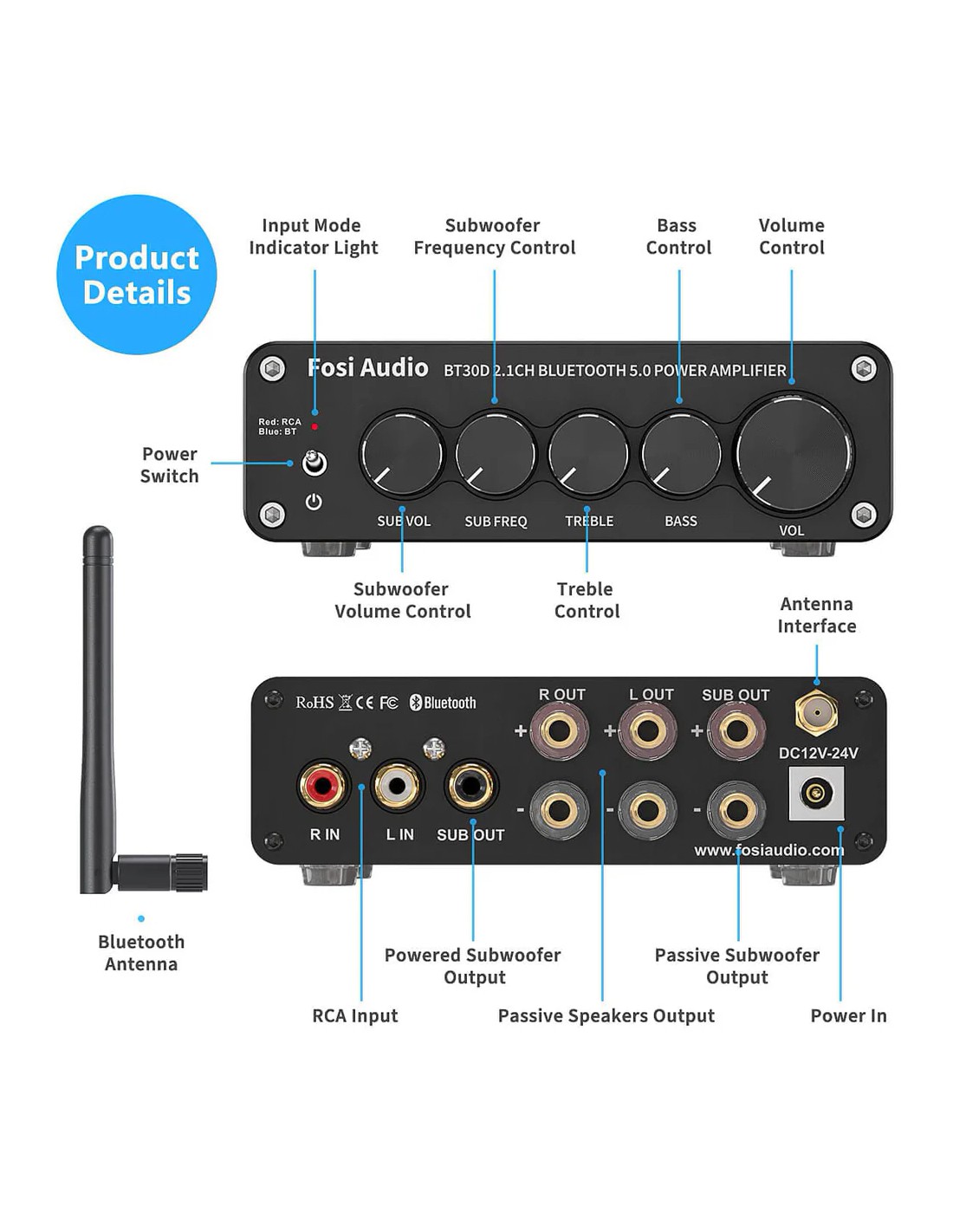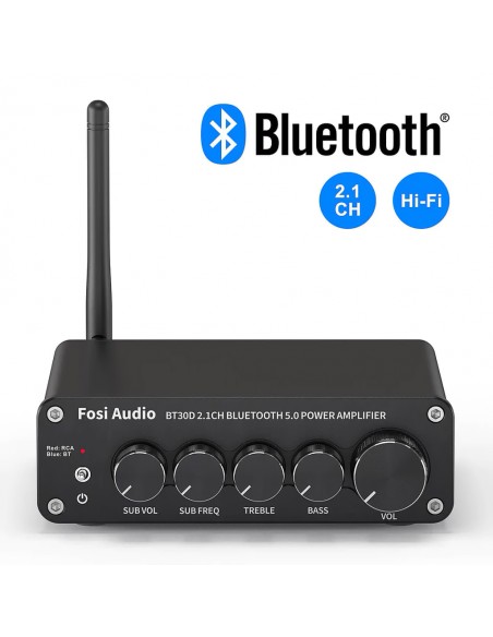 Fosi Audio BT30D Bluetooth 5.0 Amplificador De Potencia De 2.1 Canales Con Control De Graves Y Agudos