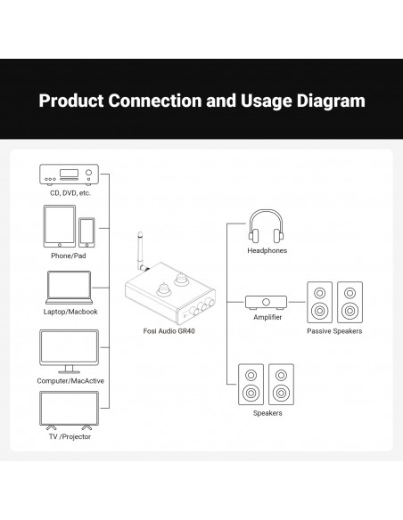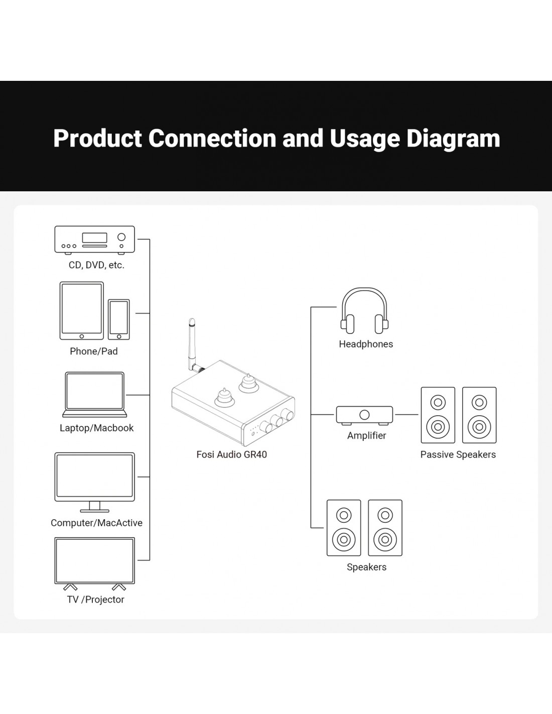 Diseño fácil de usar: El convertidor de audio digital a analógico GR40 está diseñado con la comodidad del usuario como base, lo que le permite alternar entre diferentes entradas de audio y restaurar Bluetooth: un verdadero preamplificador DAC plug-and-plug sin ningún controlador.