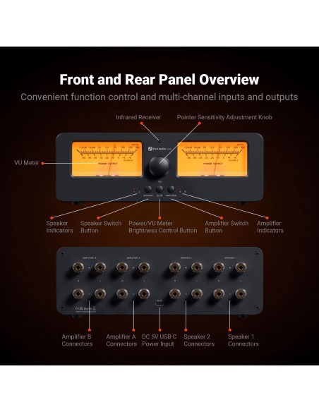 Fácil de usar: ofrece operación con botones y control remoto, lo que permite cambiar con un solo toque entre dos amplificadores y dos altavoces. Agiliza el proceso de prueba de comparación A/B para dos amplificadores o altavoces, lo que garantiza una accesibilidad sencilla. Además, ajustar el brillo de la retroiluminación y la sensibilidad de la aguja es muy sencillo, lo que mejora la experiencia general del usuario.