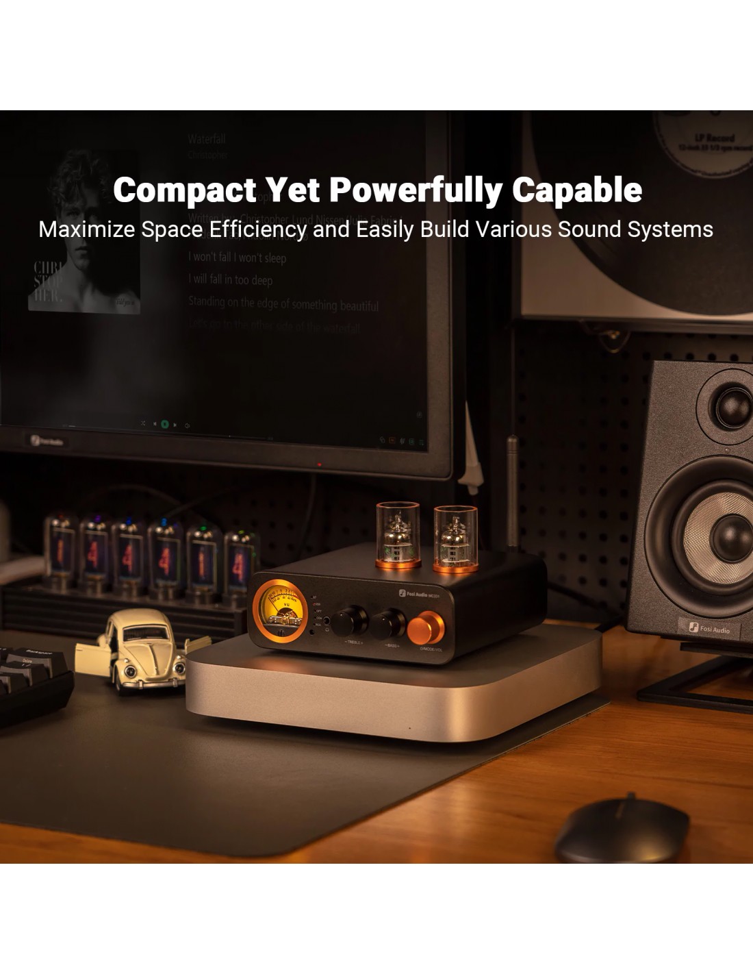 Tamaño compacto, calidez del tubo y control remoto: una combinación perfecta para disfrutar de un audio cómodo y acogedor.