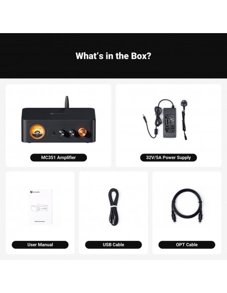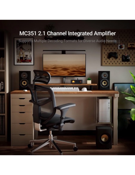 Amplificador DAC todo en uno : el amplificador integrado MC351 cuenta con capacidades de decodificación de alta resolución y admite entradas digitales Bluetooth, USB, ópticas y coaxiales. Con sus amplias opciones de entrada y salida, puede configurar fácilmente un sistema de cine en casa 2.1 u otros sistemas de audio estéreo HiFi.