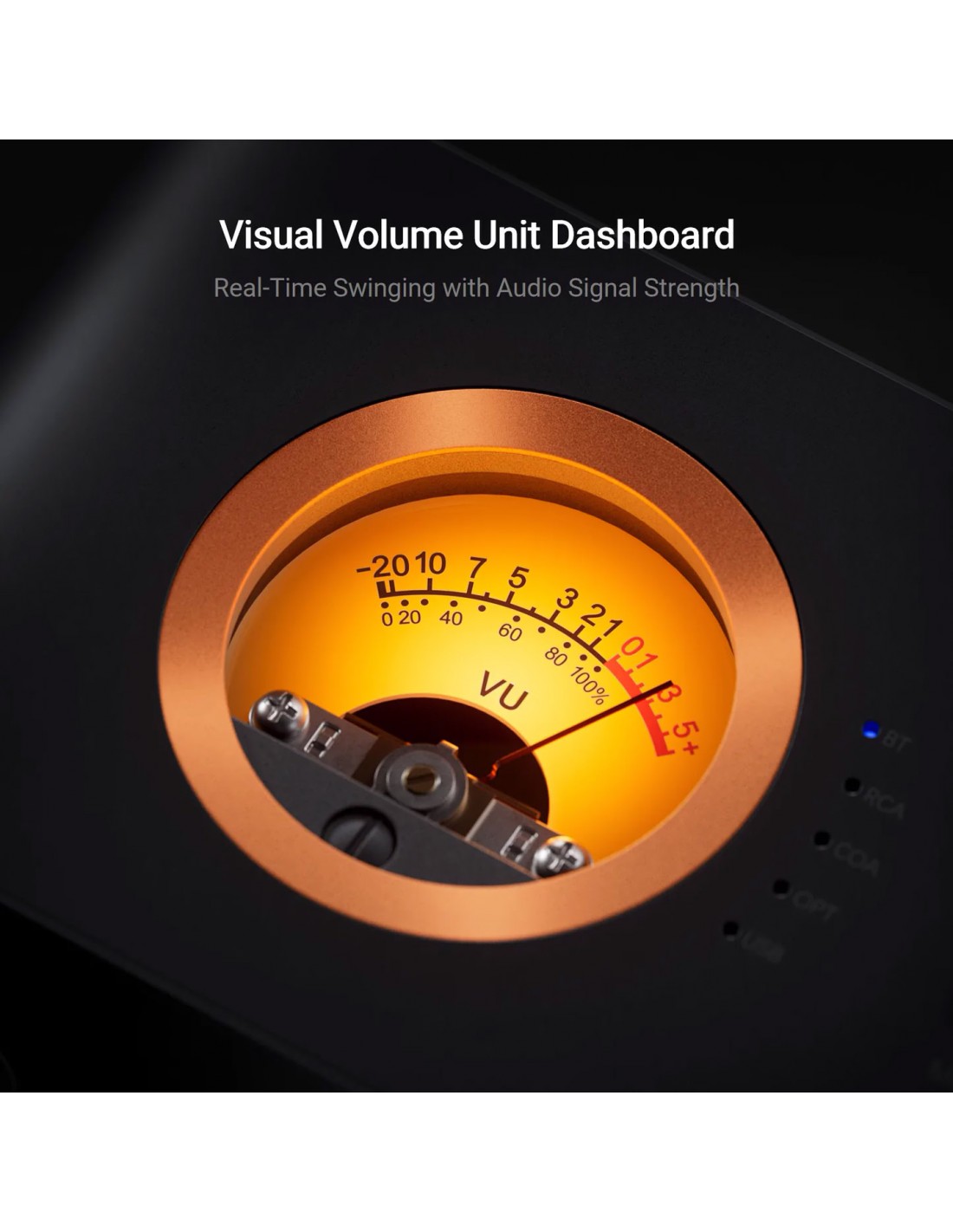 Encanto vintage : el medidor VU mini redondo y atractivo le agrega un aire retro clásico a su sistema de sonido. La aguja del medidor de nivel bailará al ritmo de la música, lo que le proporcionará un disfrute tanto visual como auditivo. El MC351 es un excelente compañero para los tocadiscos, ya que le permite revivir pistas clásicas.