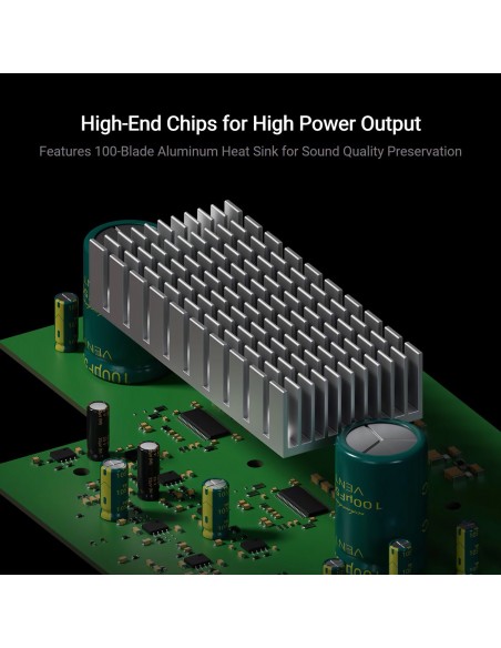 Alta potencia con un sonido excelente : equipado con dos chips amplificadores de clase D TPA3255 de Texas Instruments de alta gama y un disipador de calor de 100 aletas, el MC351 puede generar de manera estable hasta 165 W x 2 + 350 W de potencia en una configuración de 2.1 canales. El diseño de PCBA dual separado garantiza que las señales de entrada y salida no interfieran entre sí, lo que le brinda la calidad de sonido más pura e impecable.