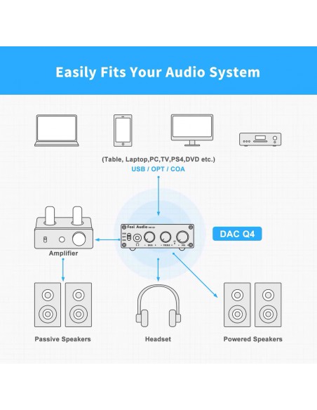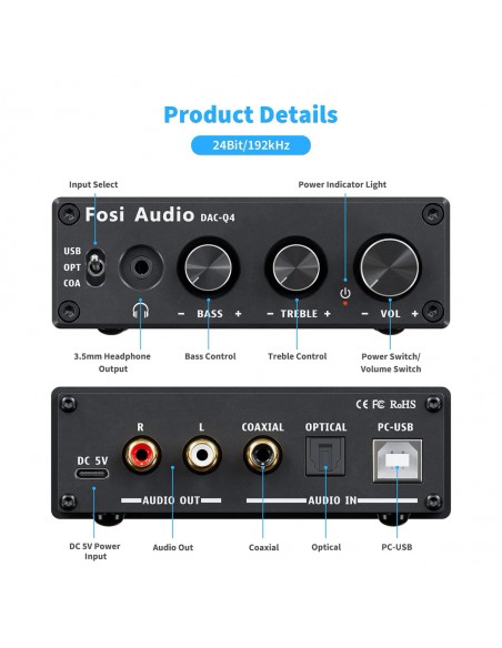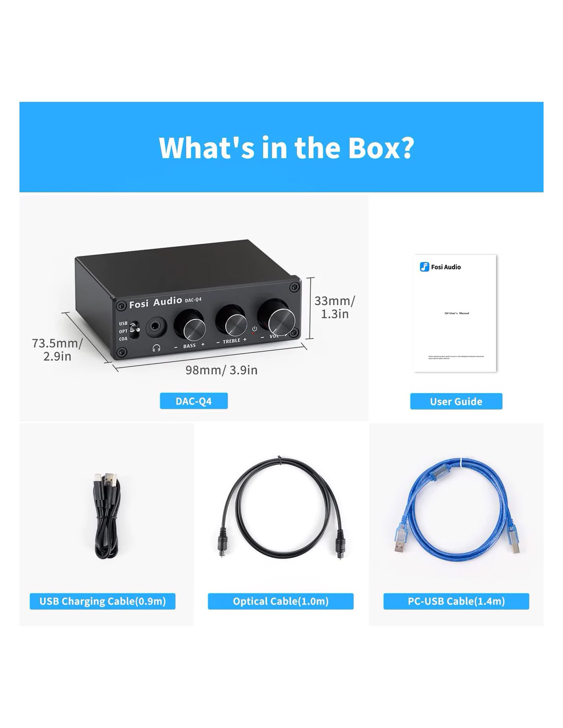 Fosi Audio Q4 Mini DAC Estéreo Para Juegos Y Amplificador De Auriculares Audio