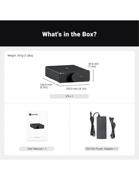 Compacto y versátil : A pesar de su tamaño compacto, el amplificador V3 tiene la capacidad de controlar altavoces pasivos de manera efectiva, lo que lo convierte en una opción versátil para amplificadores de tocadiscos, reproductores de CD y DVD para crear un sistema HiFi completo.