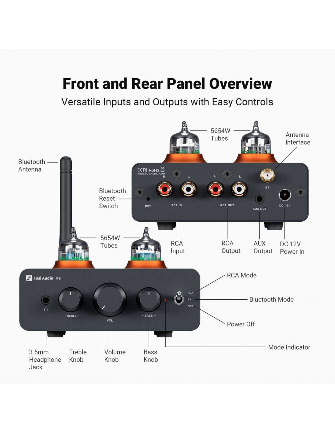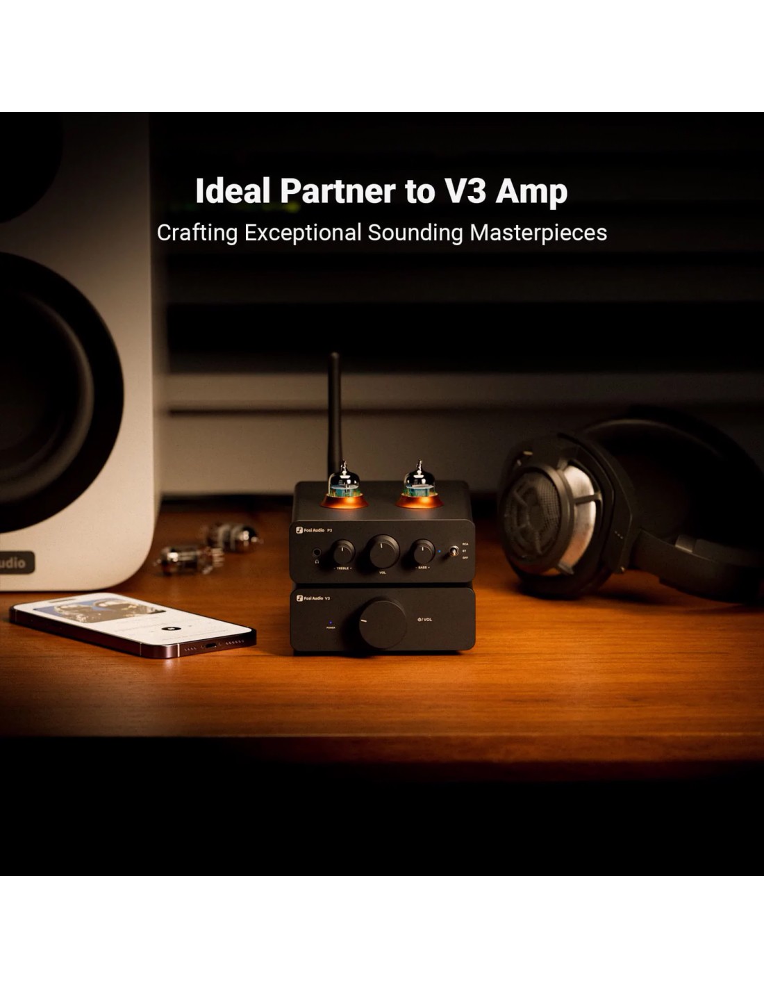 Preamplificador De Válvulas Y amplificador de Auriculares Fosi Audio P3 Con Controles De Tonos Graves Y Agudos AptX LL HD Con Bluetooth