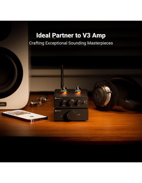 Componentes de primera calidad: utiliza condensadores ELNA de calidad audiófila y potenciómetro A cónico. Los controles de graves y agudos cuentan con topes centrales para atenuar el tono. Con una relación señal/ruido de hasta 103 dB y una diafonía de 95 dB, ayuda a formar un sistema de audio HiFi cuando se combina con el amplificador V3 de la misma serie.
