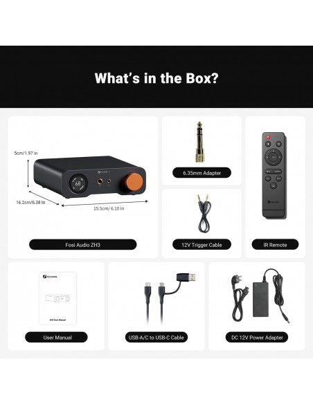 Amplificadores Hi Fi Zd3 Preamplificador Dac Balanceado Stereo Fosi Audio 916402676 $ 314.000,00 $ 349.000,00 OFERTA por tiempo limitado Convertidor de audio digital a analógico de alto rendimiento El ZD3 es un DAC estéreo balanceado de calidad audiófila desarrollado meticulosamente por Fosi Audio después de comprender a fondo las necesidades de los usuarios. Cuenta con el chip DAC de alta precisión ES9039Q2M, que ofrece un sonido rico y superior. ¡Lo quiero!