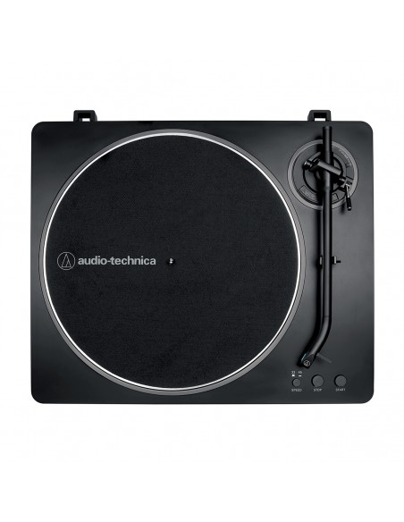 El giradiscos de transmisión por correa totalmente automático AT-LP70X es el giradiscos perfecto para quienes se inician en el mundo audiófilo. Diseñado para ofrecer una experiencia de sonido de calidad para aquellos que aman escuchar discos, desde hojear álbumes en la tienda hasta colocar un disco en el giradiscos, activar el brazo y sentarse con la tapa del álbum en la mano para disfrutar de la música tal y como la concibió el artista. Combinando la experiencia de un sonido cálido y analógico con funciones fáciles de usar, este giradiscos reproduce discos de 33-1/3 y 45 RPM e incorpora un preamplificador fonográfico conmutable que permite conectar el giradiscos a un equipo estéreo doméstico, a parlantes autoamplificados o a otro componente, con o sin una entrada de fono dedicada.