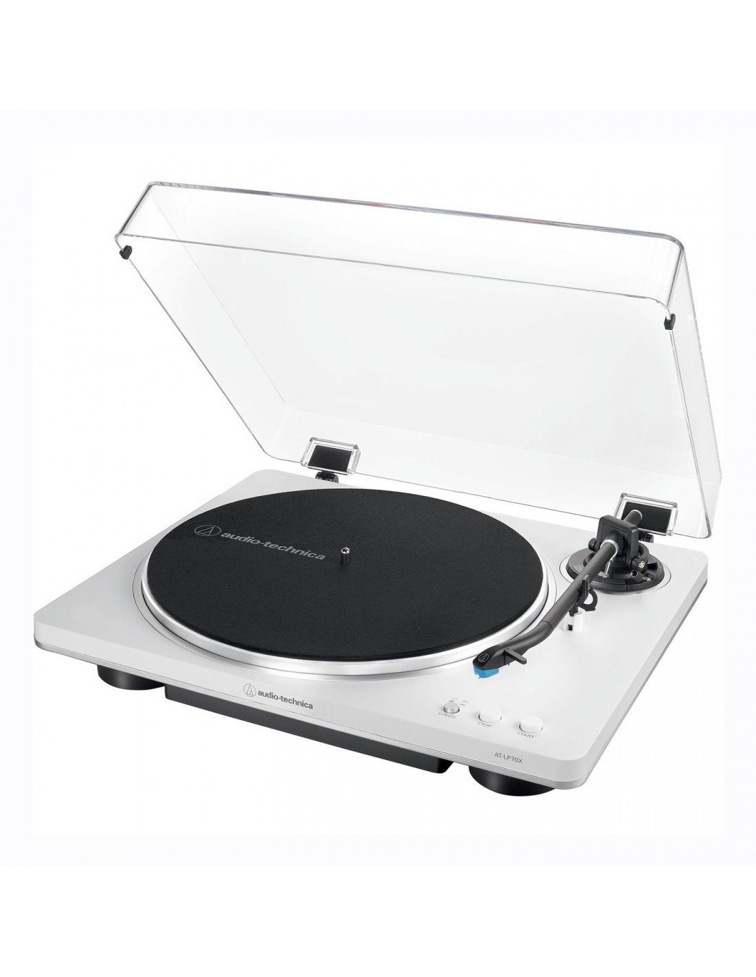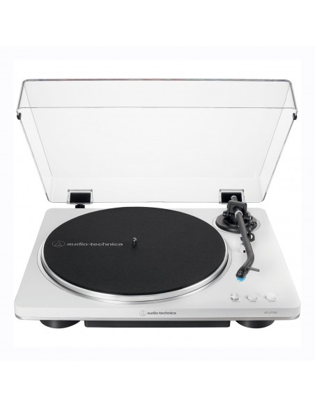 El giradiscos de transmisión por correa totalmente automático AT-LP70X es el giradiscos perfecto para quienes se inician en el mundo audiófilo. Diseñado para ofrecer una experiencia de sonido de calidad para aquellos que aman escuchar discos, desde hojear álbumes en la tienda hasta colocar un disco en el giradiscos, activar el brazo y sentarse con la tapa del álbum en la mano para disfrutar de la música tal y como la concibió el artista. Combinando la experiencia de un sonido cálido y analógico con funciones fáciles de usar, este giradiscos reproduce discos de 33-1/3 y 45 RPM e incorpora un preamplificador fonográfico conmutable que permite conectar el giradiscos a un equipo estéreo doméstico, a parlantes autoamplificados o a otro componente, con o sin una entrada de fono dedicada.