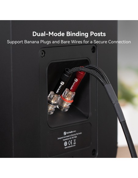 Cableado flexible: El SP601 cuenta con bornes de conexión de modo dual compatibles con conectores banana y cable desnudo. Fácil de configurar, tanto para principiantes como para audiófilos, garantiza una transmisión de señal estable, reduce la distorsión y un rendimiento fiable a largo plazo.