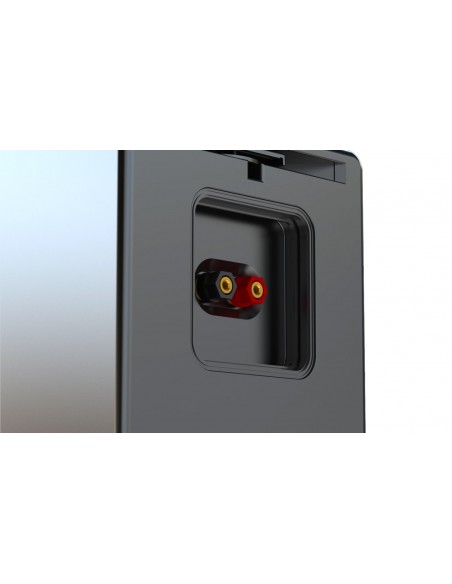 Sin grandes perillas ni soportes internos, el diseño limpio de este altavoz es elegante y funcional. El sistema de montaje en hombro con guía garantiza una instalación sencilla, manteniendo una estética moderna y estilizada que destaca en cualquier entorno.