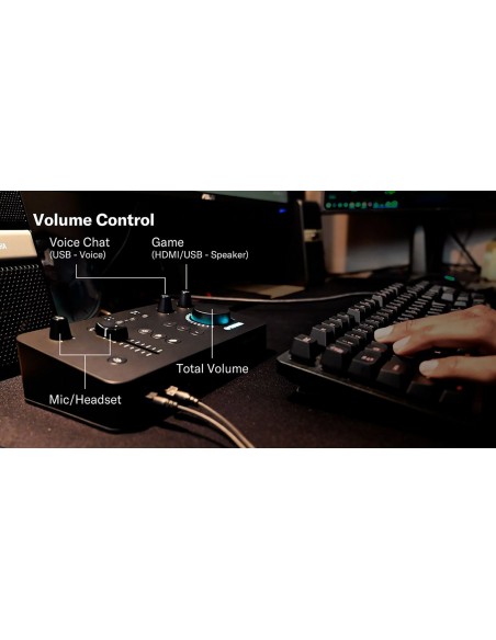 Yamaha ZG01 es un mezclador de audio de sobremesa para juegos y transmisiones en directo. Te permite controlar el micrófono y los auriculares, el chat de voz en el juego, el audio en el juego y el nivel general. Este mezclador compacto proporciona un procesamiento de sonido envolvente integrado para el audio del juego y el chat de voz, lo que garantiza una experiencia de sonido envolvente y tridimensional para sus transmisiones.