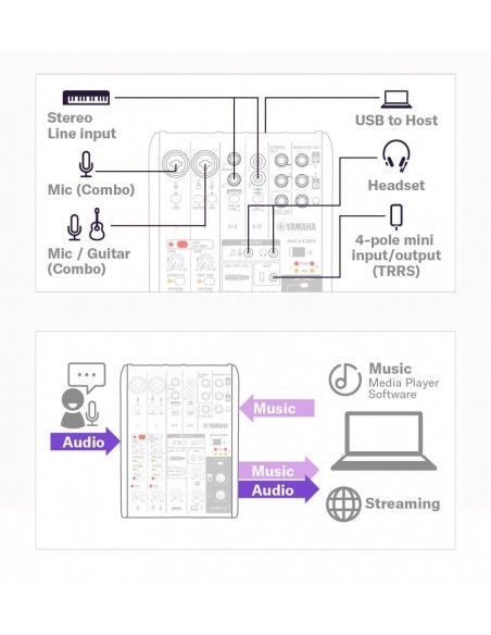 - Entradas flexibles y función LOOPBACK ideal para transmisión en vivo o grabación