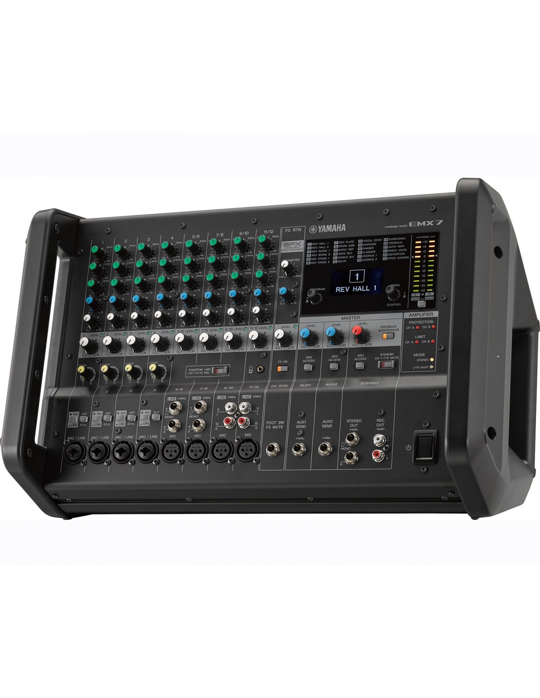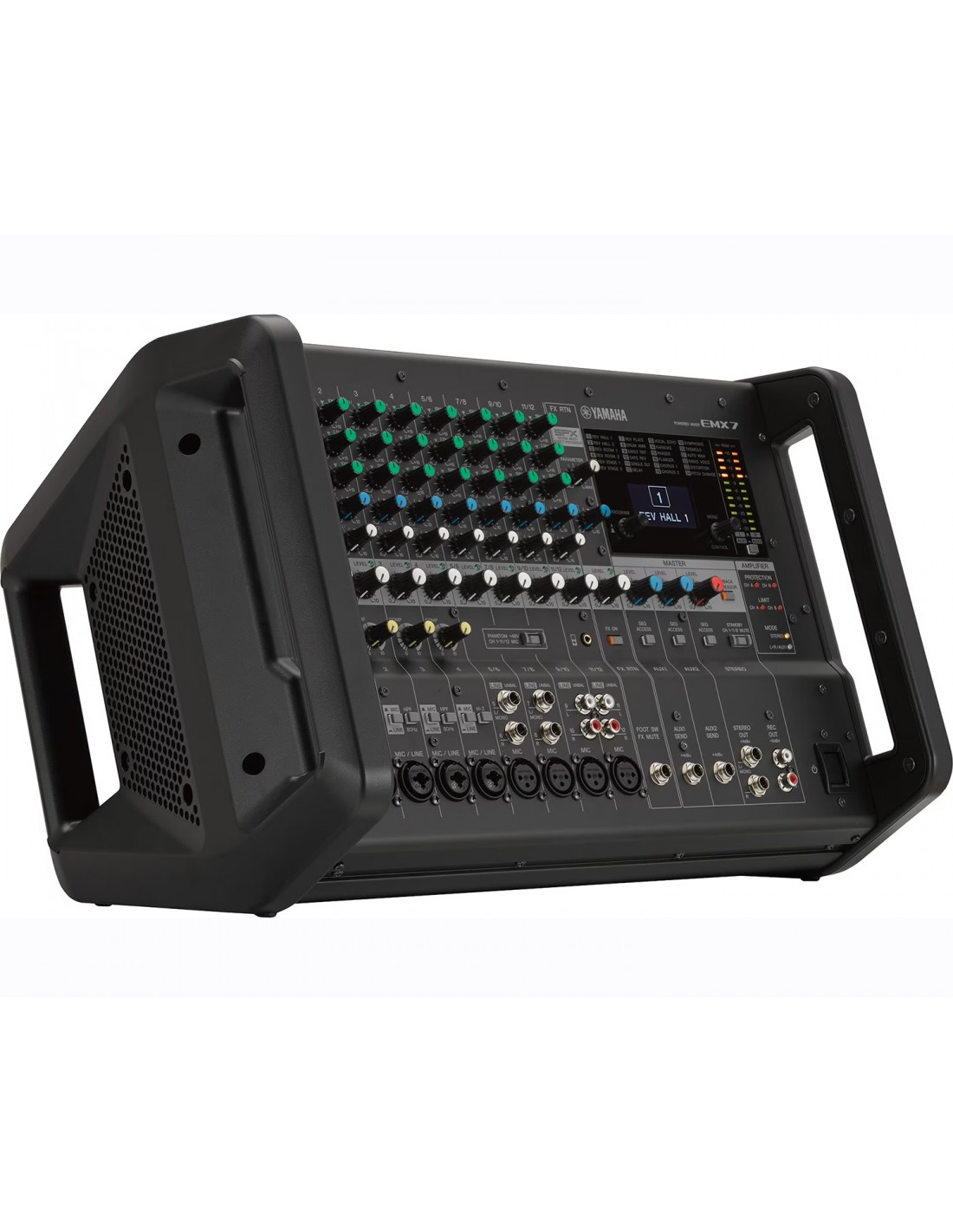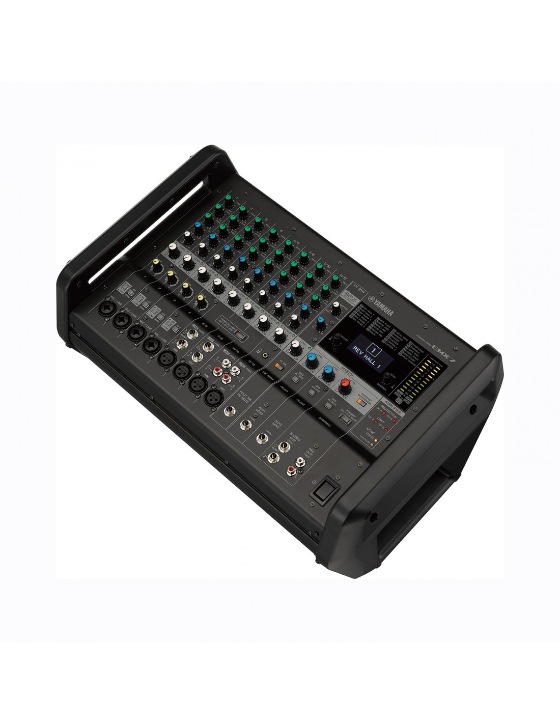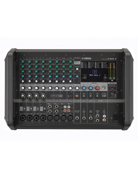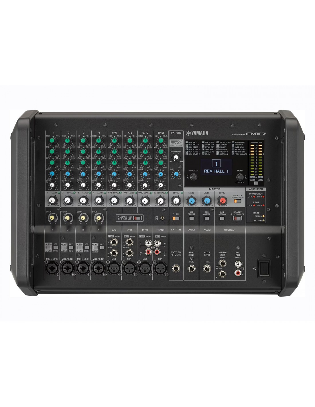 Mezclador auto amplificado tipo cabezal, con amplificador de alta eficiencia de 710W y mezclador con efectos, ecualizador gráfico Flex 9, presets para altavoces y supresor de feedback.