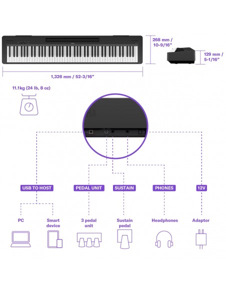 Pianos Y Teclados P-225b Piano Digital 88 Teclas Yamaha 4957812679466 $ 1.626.836,00 - Piano digital de 88 notas compacto, liviano, con una calidad de sonido detallada y rica - Chasis más corto, más fino, que las anteriores series P - Interfaz estilo botonera fácil de usar para todos - Teclado GHC (Graded Hammer Compact) que te dan la tan preciada sensación acústica de los instrumentos anteriores de la serie P pero con una calidad más... Ver