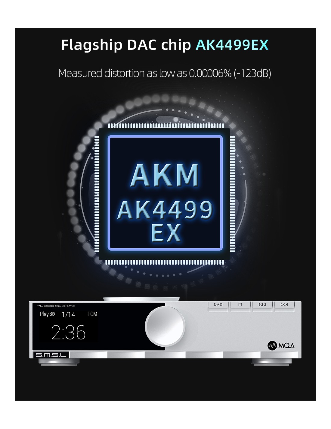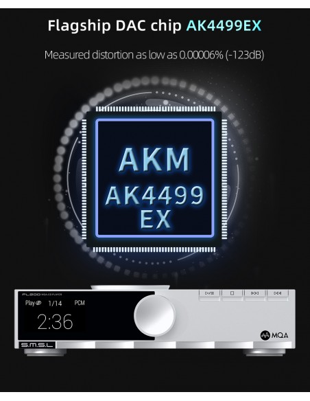 S.M.S.L PL200 MQA-CD Player HiFi Lossless AK4499EX Chip Bluetooth Playback Dac Amplificador de auriculares, con control remoto