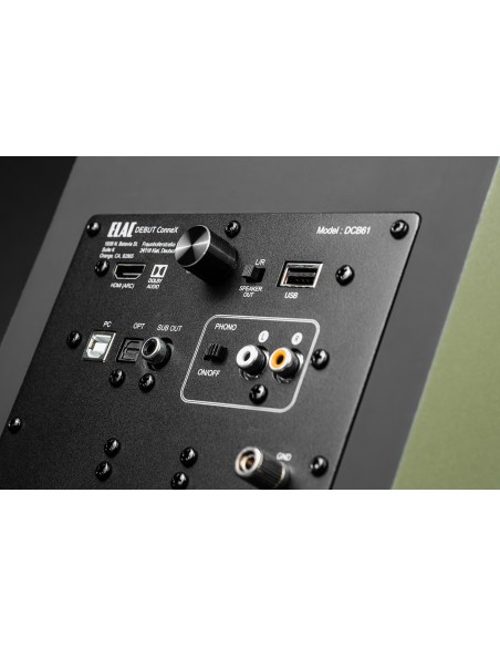 El Debut ConneX DCB61 es un sistema de altavoces inalámbricos de alto rendimiento diseñado para ofrecer la máxima comodidad y una calidad de sonido superior. Basado en el diseño de los compactos y galardonados DCB41, el DCB61 incorpora un control mejorado mediante una aplicación (disponible para iOS y Android) y potentes woofers de 6,5" de larga excursión. Gracias a su compatibilidad con Dolby Digital, estos altavoces ofrecen un sonido envolvente con calidad cinematográfica. Con una amplia gama de entradas —incluidas HDMI ARC, analógica/fono, óptica, USB y Bluetooth—, junto con controladores y amplificadores meticulosamente diseñados, el DCB61 garantiza una experiencia auditiva excepcional que supera todas las expectativas.