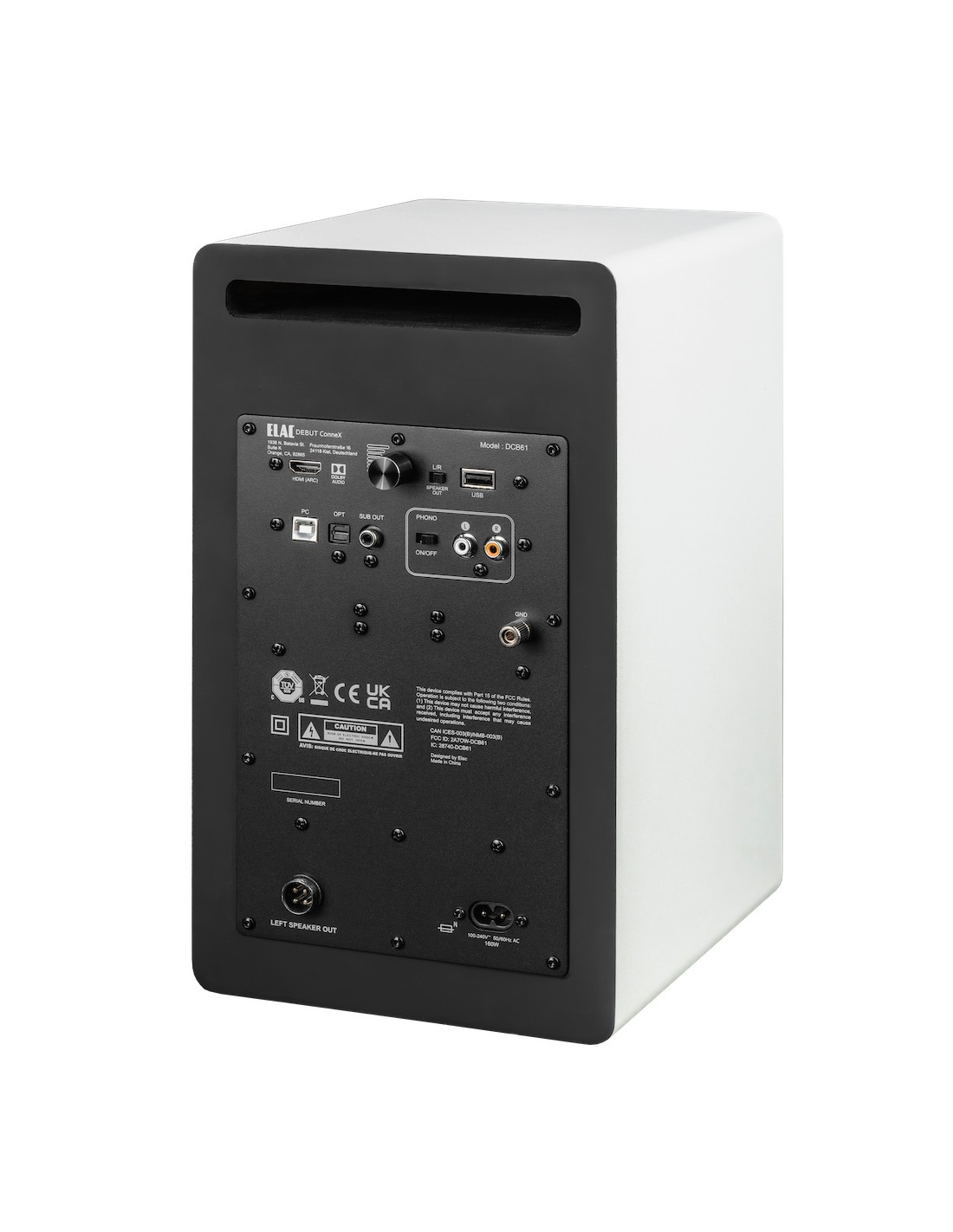 El altavoz ELAC ConneX incorpora la tecnología XBass Enhancer de ELAC, que ofrece una mayor extensión y potencia de graves para un sonido más rico y dinámico, con la opción de desactivarla para una respuesta más neutra. Para mejorar aún más el rendimiento en bajas frecuencias y minimizar el ruido de ventilación, el DCB61 utiliza un puerto bass reflex trasero en forma de "S", lo que garantiza una reproducción de graves más profunda y nítida.