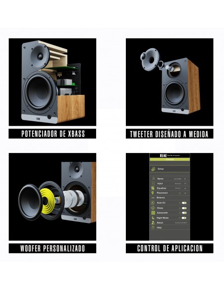 El altavoz ELAC ConneX incluye una aplicación diseñada a medida para una configuración y un control sencillos. Ajusta fácilmente la ecualización, optimiza su ubicación, regula el encendido automático y controla el volumen, todo desde tu smartphone. Disfruta de una configuración fluida y un sonido personalizado al alcance de tu mano.